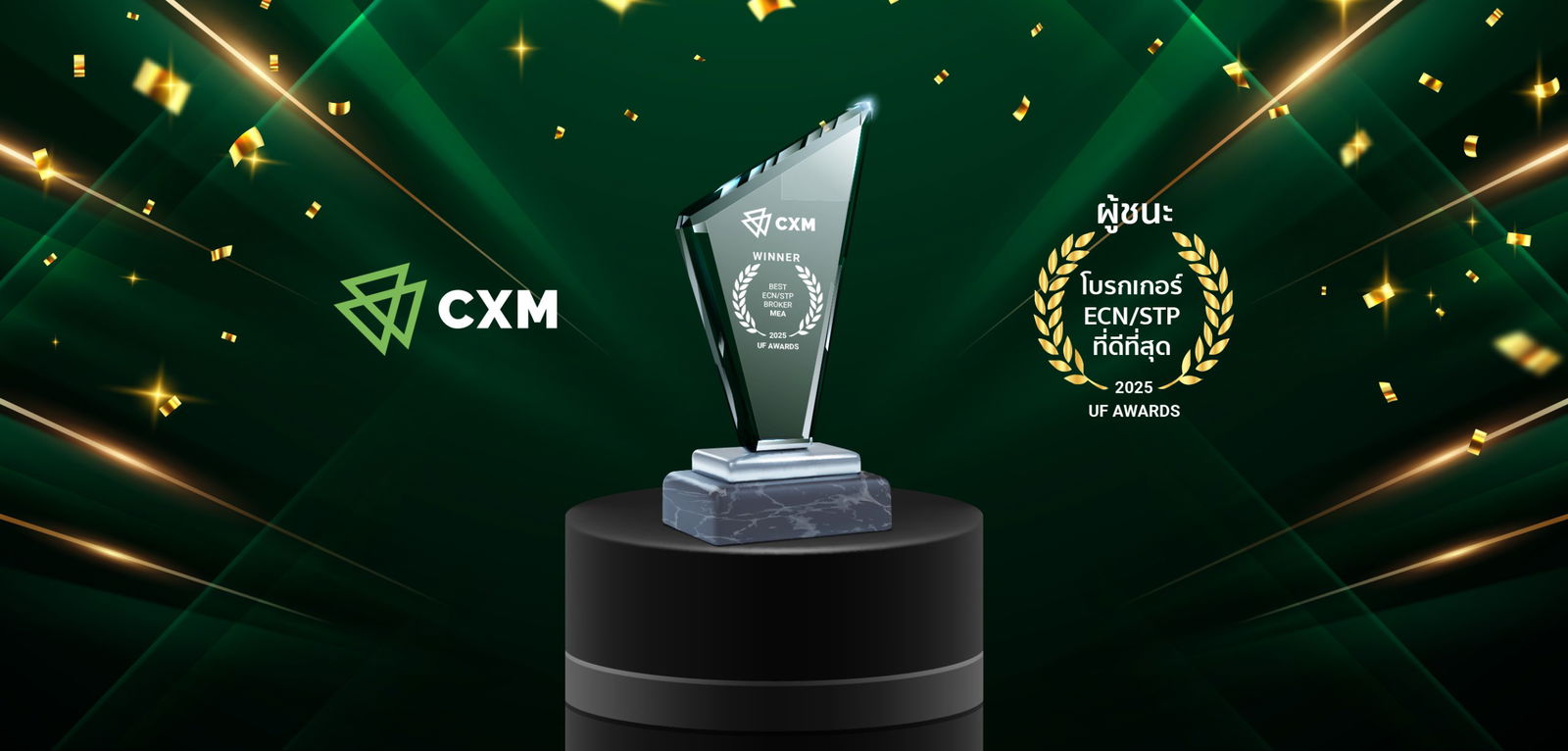 เราทำสำเร็จอีกแล้ว! CXM ได้รับการยกย่องอย่างเป็นทางการให้เป็น โบรกเกอร์ ECN/STP ที่ดีที่สุด – MEA ในงาน Ultimate Fintech Middle East & Africa Awards 2025 อันทรงเกียรติ! การได้รับการยอมรับนี้ตอกย้ำตำแหน่งของเราในฐานะโบรกเกอร์ชั้นนำในตะวันออกกลางและแอฟริกา โดยสร้างมาตรฐานใหม่ในด้านความโปร่งใส ความเร็วในการดำเนินการ และเงื่อนไขการเทรดที่เหนือกว่า